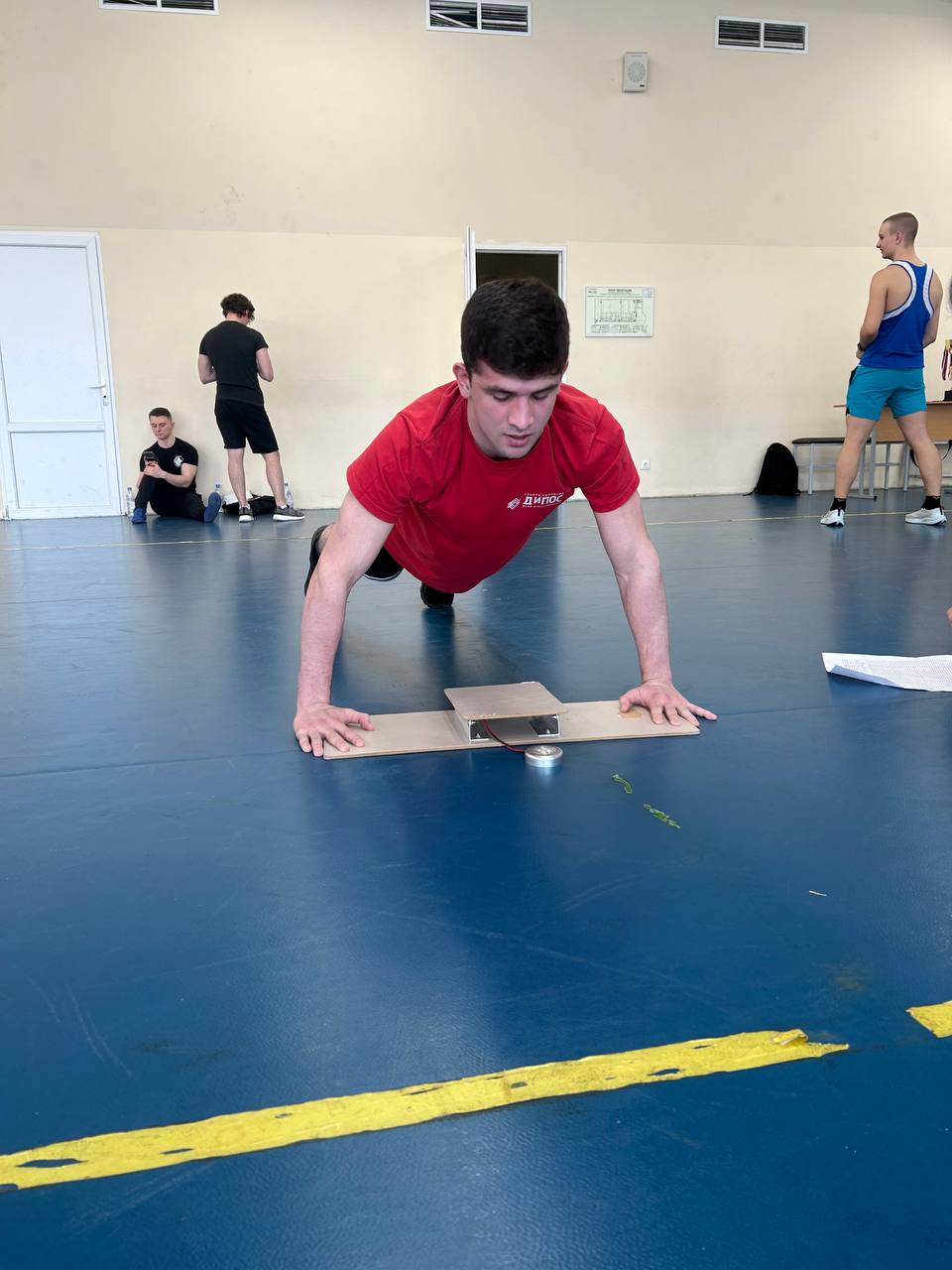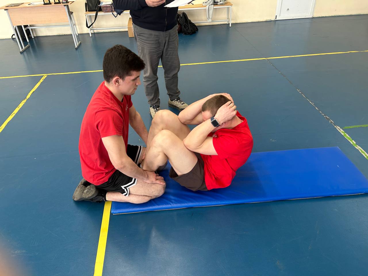 Участники соревновались в отжиманиях, наклонах, прыжке в длину, упражнениях на пресс и челночном беге.